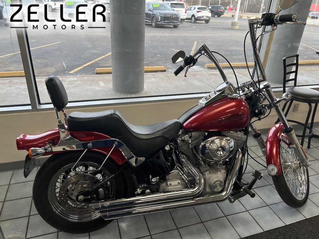 This 2004 HARLEY DAVIDSON FXST Softail RED with a interior.