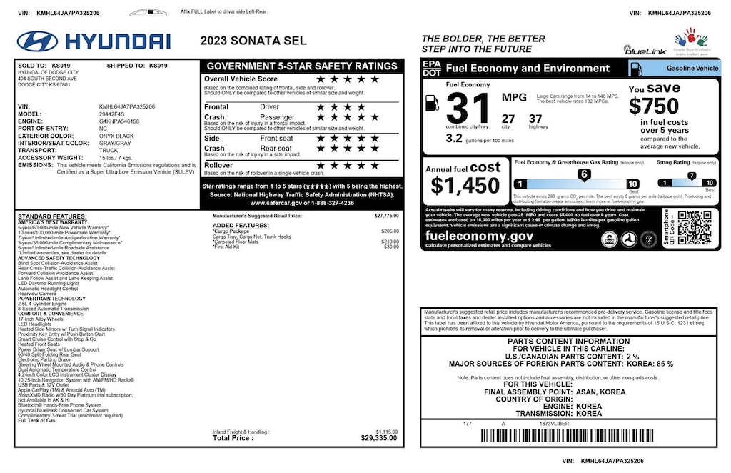 This Hyundai Sonata comes with the following packages: